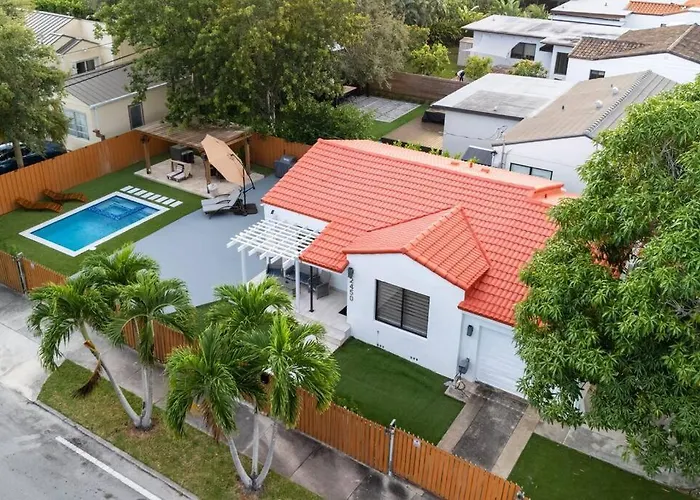 Luxury Retreat 3B ,2Ba Pool, Coral Gables Center Villa features tea and coffee making equipment, a refrigerator, and a stovetop provided in a full kitchen. The seafood restaurant Farolito Peruvian Restaurant is located 150 metres away and serves Spanish dishes. Miami International airport can be reached in 15 minutes by car. This property has a terrace to relax on after a busy day, along with a private swimming pool.